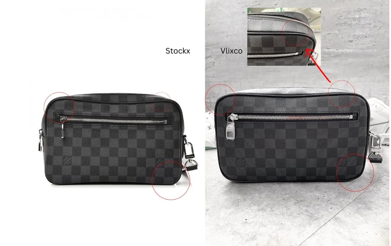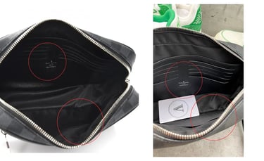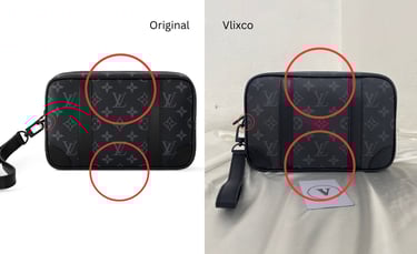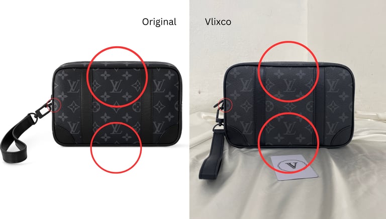 1. Bisa dilihat dari detail monorgram dari atas sampai kebawah. Cutting dan placementnya udah precise banget dimana ini buat productnya cukup susah dibedakan. Dan diingat kembali, ini kita langsung compare dari web asli ya !