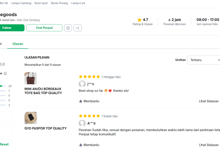 Tokopedia : https://www.tokopedia.com/vluxuries/review"